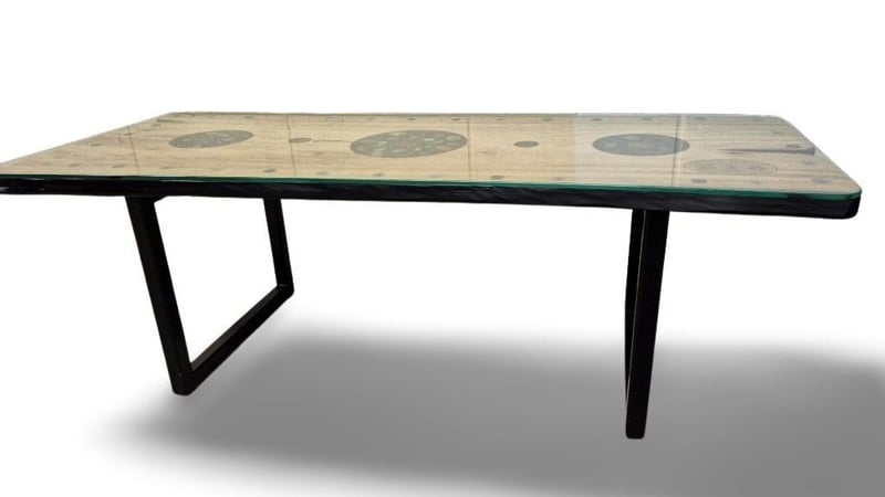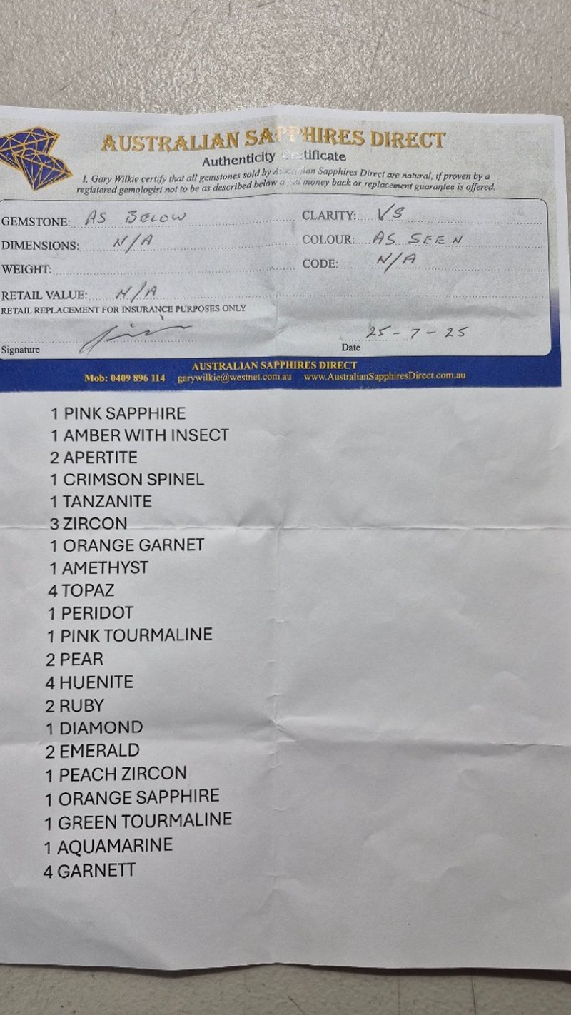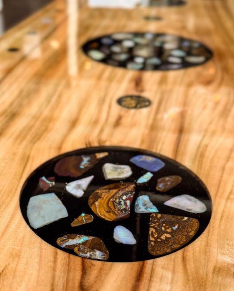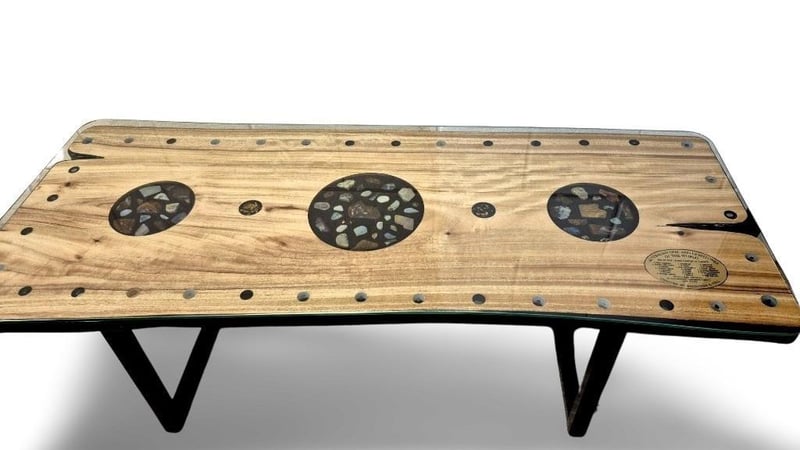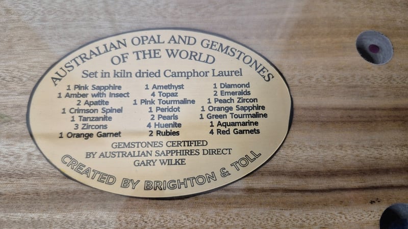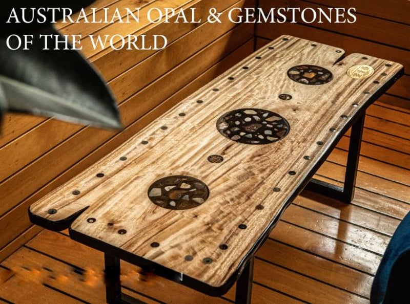 AUSTRALIAN HANDCRAFTED COFFEE TABLE MASTERPIECEThis extraordinary piece of functional art is the result of a two-month collaboration between a master craftsman and a world class gemstone supplier, meticulously completed in 19 stages.The table features a dazzling inlay of Australian opals sourced from Coober Pedy (South Australia), Lightning Ridge (New South Wales), and Opalton (Queensland). These are joined by rare gemstones from across the globe, Afghanistan, Burma, Sri Lanka, Tanzania, and beyond, forming a cryptic puzzle for the eye to explore. Accenting the design is pure 24-carat gold, adding richness and brilliance. For strength and practicality, the clear glass surface has been tempered, merging artistry with functional elegance.An embedded plaque records every gemstone and its quantities, inviting the owner to test their knowledge and powers of deduction. The base, crafted from kiln-dried Camphor Laurel, provides a beautiful and enduring foundation.In essence, this heirloom masterpiece is far more than a table, it is a legacy, designed to endure for centuries.Item Size: Height: 41.5cm, Width: 121cm, Depth: 51cm1 Pink Sapphire1 Amber With Insect2 Apertite1 Crimson Spinel1 Tanzanite3 Zircon1 Orange Garnet1 Amethyst4 Topaz1 Peridot1 Pink Tourmaline2 Pearl4 Huenite2 Ruby1 Diamond2 Emerald1 Peach Zircon1 Orange Sapphire1 Green Tourmaline1 Aquamarine4 GarnetCondition: Good - Refer To Images587660+1