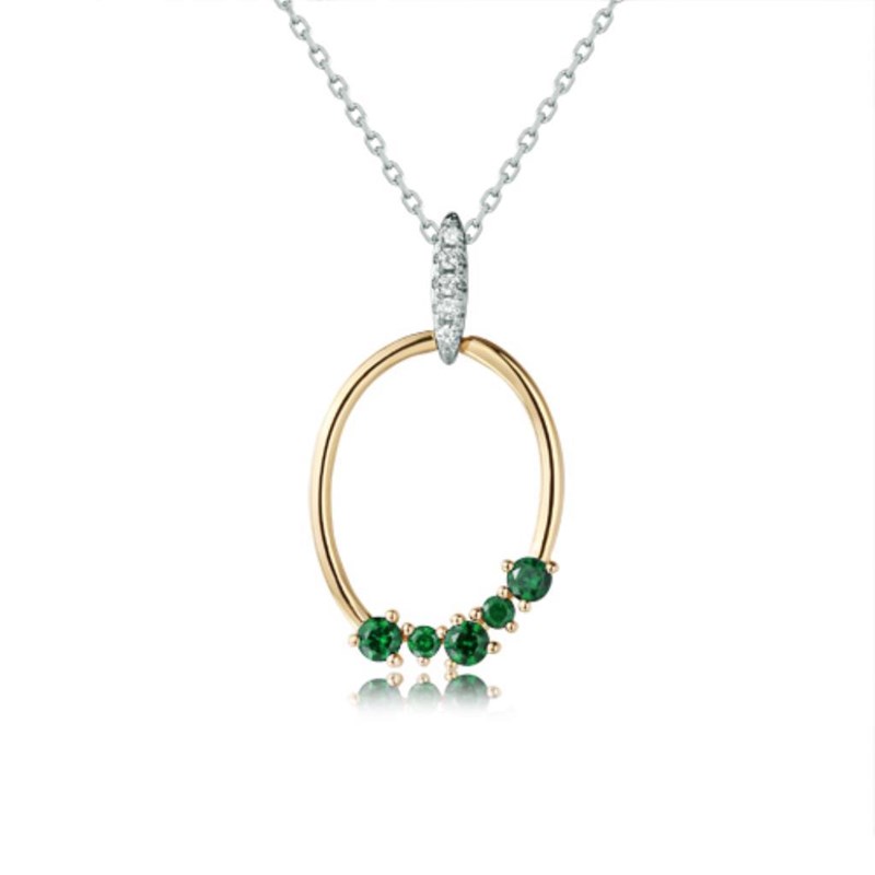 9CT YELLOW GOLD NATURAL DIAMOND & NATURAL EMERALD NECKLACE