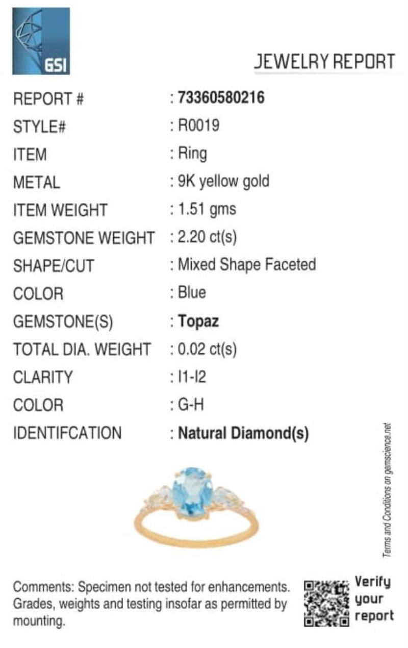 9CT YELLOW GOLD NATURAL SWISS BLUE TOPAZ / NATURAL SWISS BLUE TOPAZ & DIAMOND RING