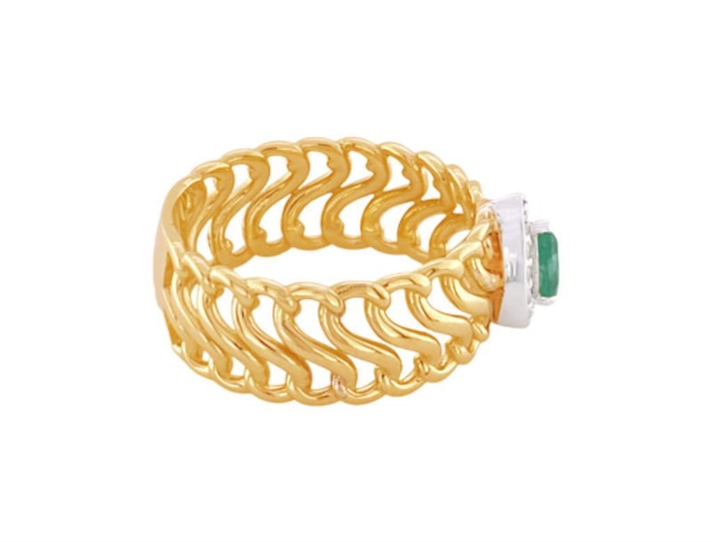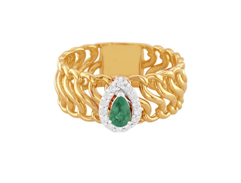 9CT YELLOW GOLD EMERAL AND DIAMOND RING