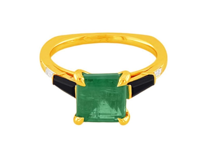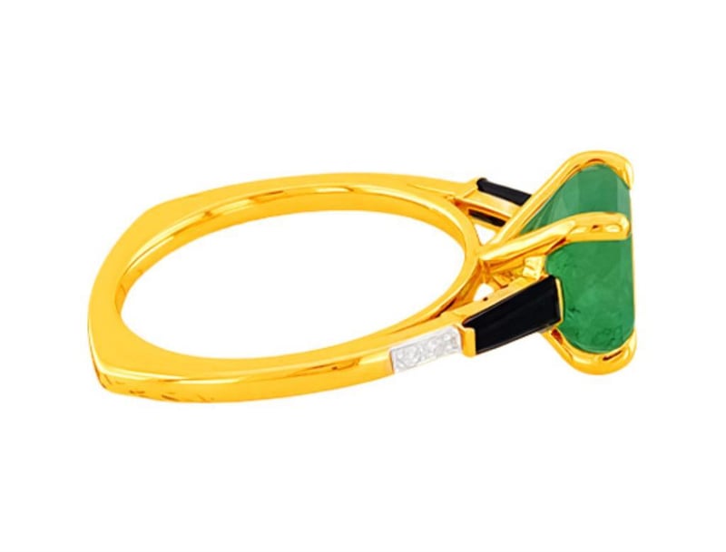9CT YELLOW GOLD EMERALD ONYX AND DIAMOND RING