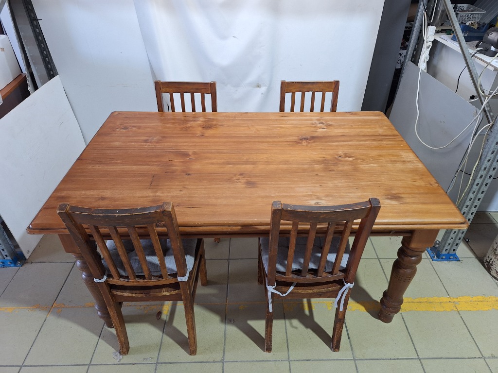 4 Seater Dining Table, Timber Style, Brown Finish Dimensions Chairs H:94cm W:42cm D:45cm Dimensions Table H:77cm W:103cm D:170cm