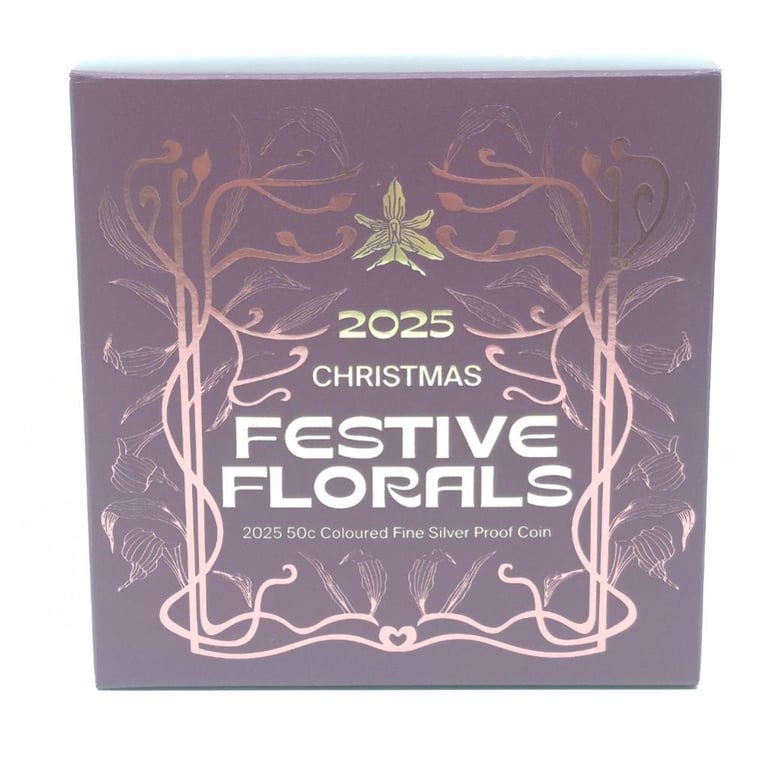 AUSTRALIAN COIN Royal Australian Mint Scarce 2025 Festive Florals Colored Silver Coin. Condition: Proof587610+16