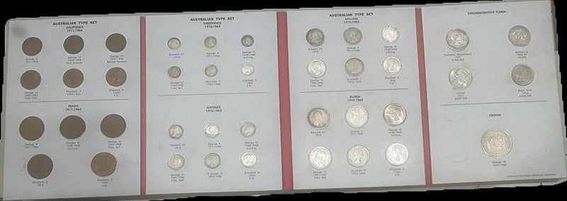 AUSTRALIAN HENDO COIN ALBUM MONARCH SET OF 40 COIN, FROM PENNIES/HALF PENNIES/FLORINS/SHILLING/HALF SHILLING/SIX PENCE & THREE PENCE…VERY SCARCE AND VALUABLE SET IT HAS 1934-35 SHILLING CANBERRA FLORIN, 1937 AUSTRALIAN CROWN AND MORE Australian Hendo Coin Album Monarch Set Of 40 Coin, From Pennies/Half Pennies/Florins/Shilling/Half Shilling/Six Pence & Three Pence…Very Scarce And Valuable Set It Has 1934-35 Shilling Canberra Florin, 1937 Australian Crown And More +61