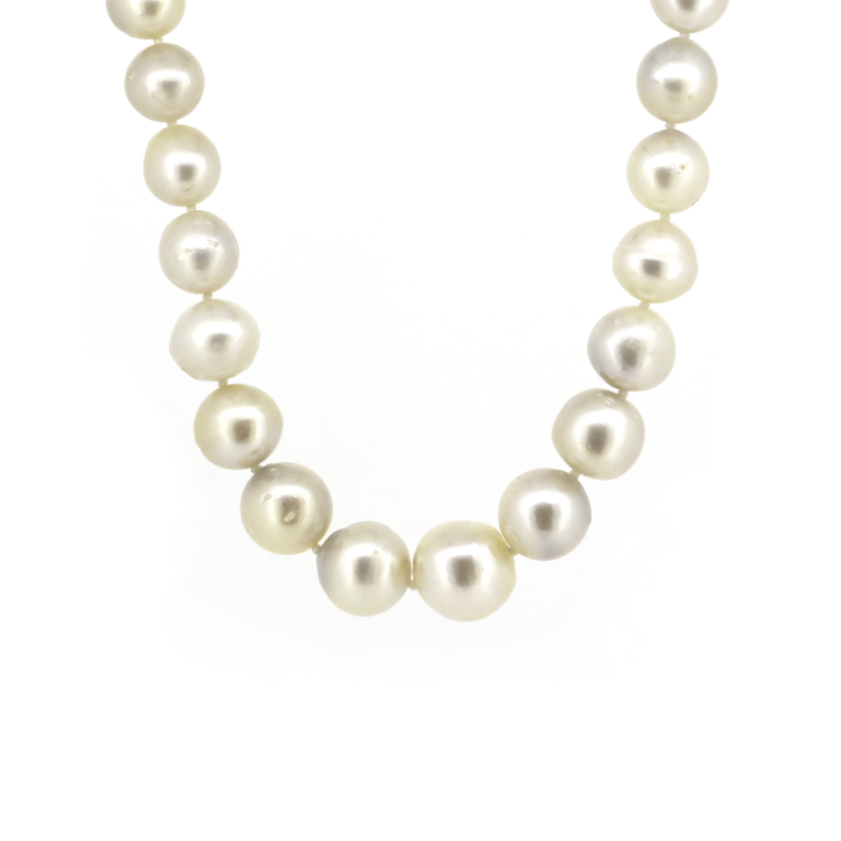 14K WHITE GOLD, WHITE CULTURED SOUTH SEA PEARL AND DIAMOND, STRAND NECKLACE. The Design Features, 39 Near Round, White With Gold And Silver Overtones, Cultured South Sea Pearls (13.20Mm Size, Good Lustre, Natural Blemishes). Embellishing The 14K White Gold Filigree Ball Clasp Are, 4 Round Brilliant Cut, Diamonds (0.03Ct Tdw, H Colour, Si-I1 Clarity), Bead Set. Necklace Length Is 45Cm. Valuations Provided by an Independent Third-Party Professional Not Directly Associated With Lloyds Auctions at AUD $$14,500.00This valuation has been conducted by an independent third-party professional. The valuation amount is an assessment by the issuing valuer and does not reflect the auction value of the item. Any inquiries regarding the valuation should be directed to the issuing valuer (refer to contact details on the certificate), as Lloyds Auctions has no affiliation or influence over the valuation, the valuer, or the stated amount. Condition: Good - Refer Images 0645847+54