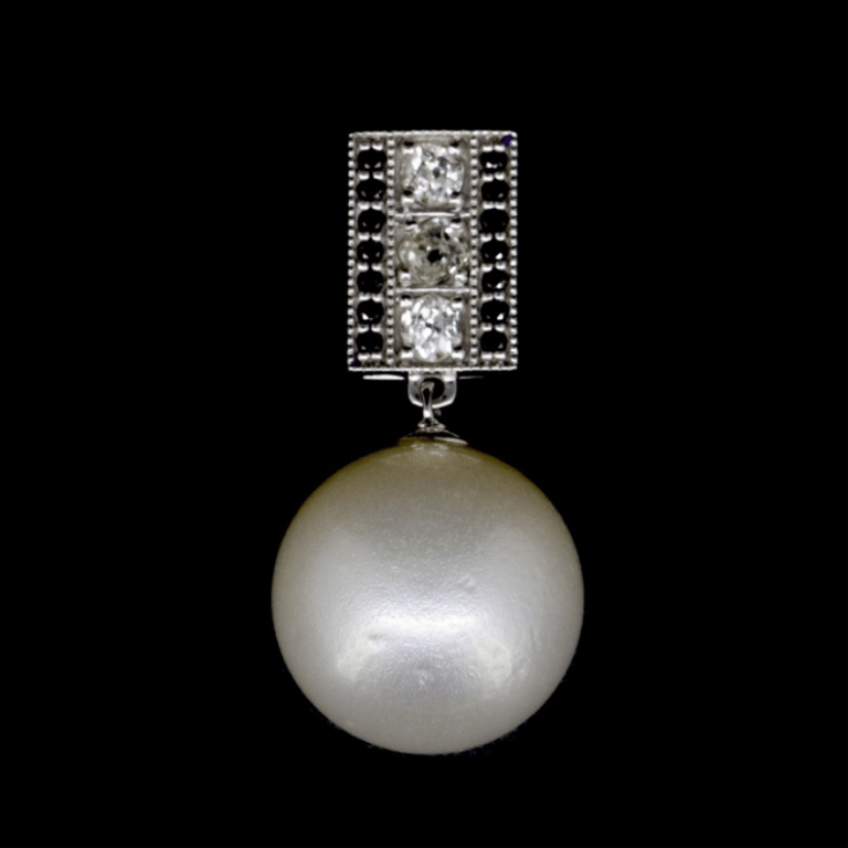 14K WHITE GOLD, WHITE CULTURED SOUTH SEA PEARL AND DIAMOND, PENDANT. The Design Features, One Near Round, White With Silver Overtones, Cultured South Sea Pearl (14.20Mm-15.20Mm Size, Good Luster, Natural Growth Blemishes). Decorating The Bail Are, 3 Round Brilliant Cut, Diamonds (0.30Ct Tdw, H-J Colour, Si-P1 Clarity), Micro-Bead Set. Flanked By, 14 Round Brilliant Cut, Black, Diamonds (0.10Ct Tdw, Opaque), Micro-Bead Set. Valuations Provided by an Independent Third-Party Professional Not Directly Associated With Lloyds Auctions at AUD $$8,250.00This valuation has been conducted by an independent third-party professional. The valuation amount is an assessment by the issuing valuer and does not reflect the auction value of the item. Any inquiries regarding the valuation should be directed to the issuing valuer (refer to contact details on the certificate), as Lloyds Auctions has no affiliation or influence over the valuation, the valuer, or the stated amount. Condition: Good - Refer Images 0645847+26