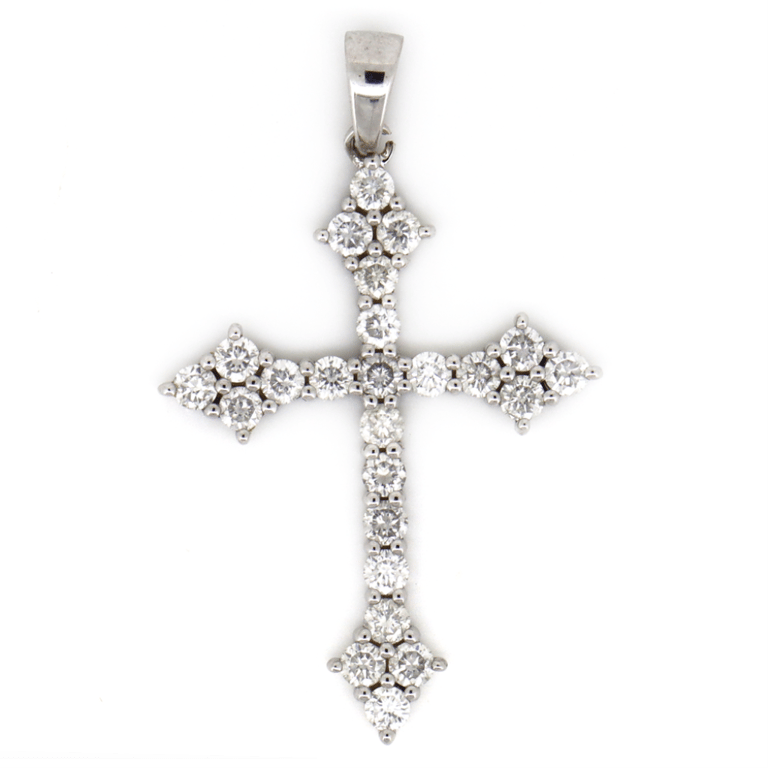 14K WHITE GOLD, 1.07CT TDW DIAMOND, CRUCIFIX PENDANT. The Design Features, 24 Round Brilliant Cut, Diamonds (1.07Ct Tdw, I-K Colour, Si1-Si2 Clarity), Claw Set. Valuations Provided by an Independent Third-Party Professional Not Directly Associated With Lloyds Auctions at AUD $$9,300.00This valuation has been conducted by an independent third-party professional. The valuation amount is an assessment by the issuing valuer and does not reflect the auction value of the item. Any inquiries regarding the valuation should be directed to the issuing valuer (refer to contact details on the certificate), as Lloyds Auctions has no affiliation or influence over the valuation, the valuer, or the stated amount. Condition: Good - Refer Images 0645847+85