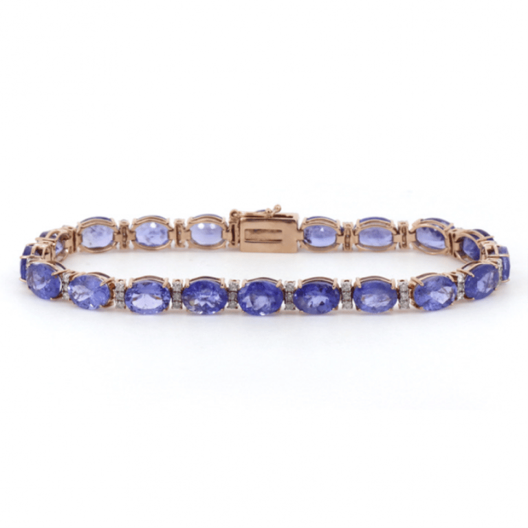 14K ROSE GOLD, TANZANITE AND DIAMOND, LINE BRACELET. The Bracelet Features, 20 Oval Cut, Medium Purplish-Blue, Tanzanites (25.95Ct Tsw, Moderate Eye Visible Inclusions), 4 Claw Set. Alternating Between Are, 60 Round Brilliant Cut, Diamonds (0.71Ct Tdw, J-K Colour, Si2-I2 Clarity), Micro-Claw Set In White Gold. The Bracelet Has A Box Lock Closure With A Figure Eight Safety Latch. Bracelet Length Is 18.9Cm. Valuations Provided by an Independent Third-Party Professional Not Directly Associated With Lloyds Auctions at AUD $$34,590.00This valuation has been conducted by an independent third-party professional. The valuation amount is an assessment by the issuing valuer and does not reflect the auction value of the item. Any inquiries regarding the valuation should be directed to the issuing valuer (refer to contact details on the certificate), as Lloyds Auctions has no affiliation or influence over the valuation, the valuer, or the stated amount. Condition: Good - Refer Images 0645847+38
