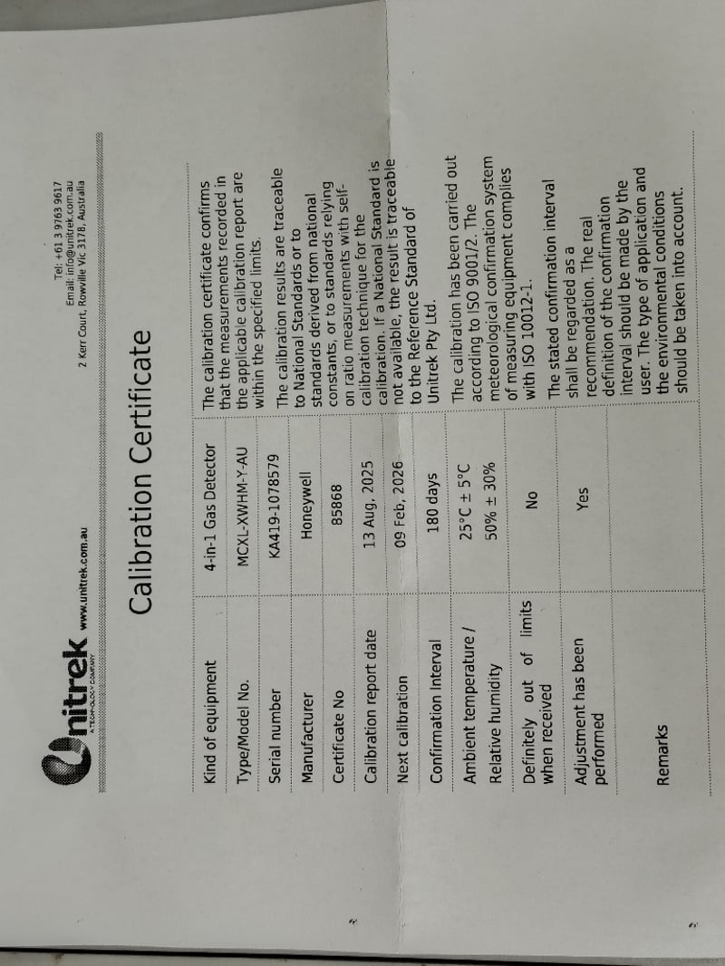 Four in one Honeywell Gas detector Model: MCXL-XWHM-Y-AU Serial no: KA419-1078579 Location: Mornington, VIC Contact: Gage Mackay - 0458 732 549 or [email protected]