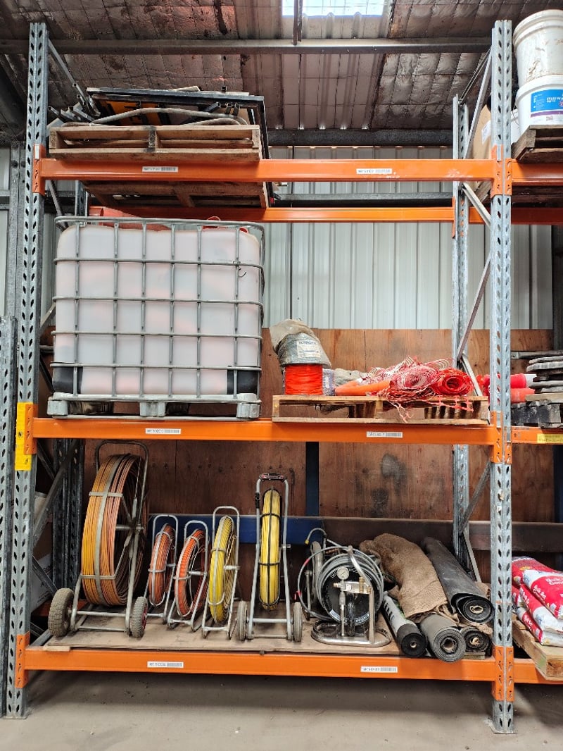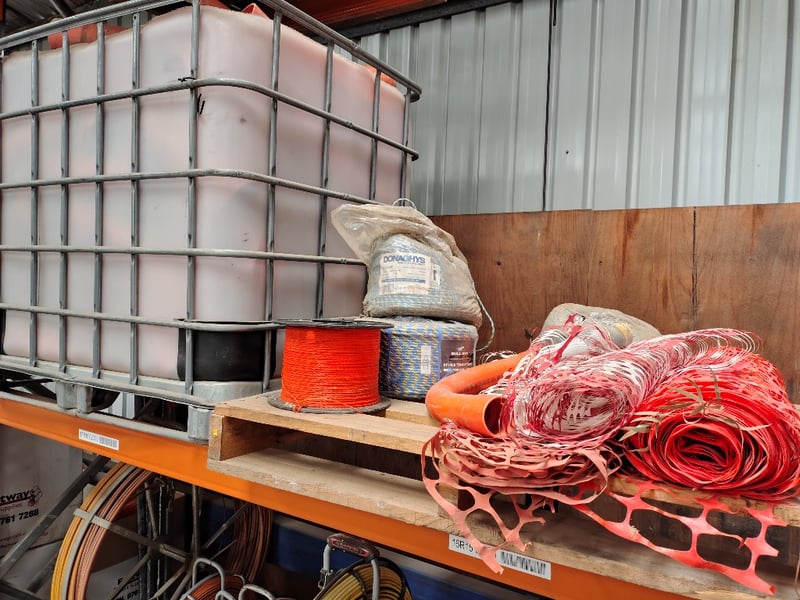 Shelf lot, assorted items, Including: Reinforced Stillage, Electrical Cable Roles, High-Vis Temporary Fencing & More Notes: shelf is not included, Sold as lot Location: Mornington, VIC Contact: Gage Mackay - 0458 732 549 or [email protected]