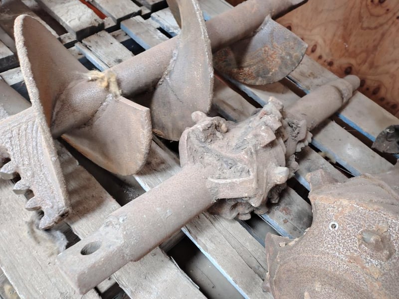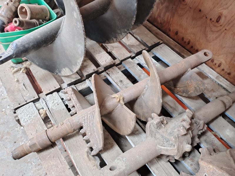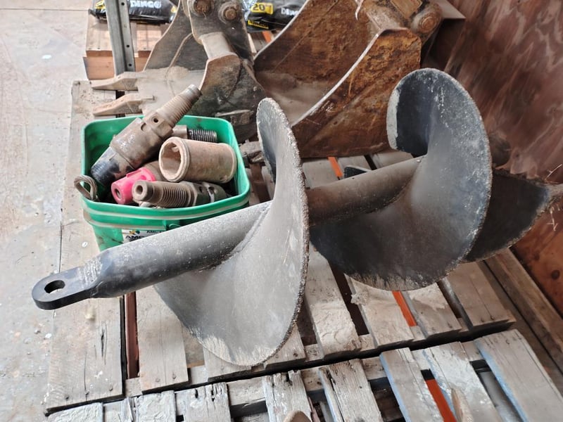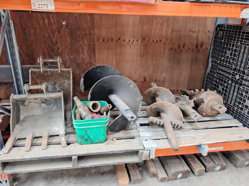 2 pallets of Construction Attachments Sold as lot Including: 2 x Buckets 2 x Augers 2 x Reamers