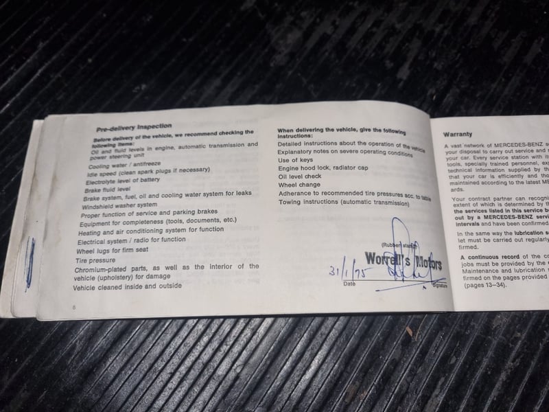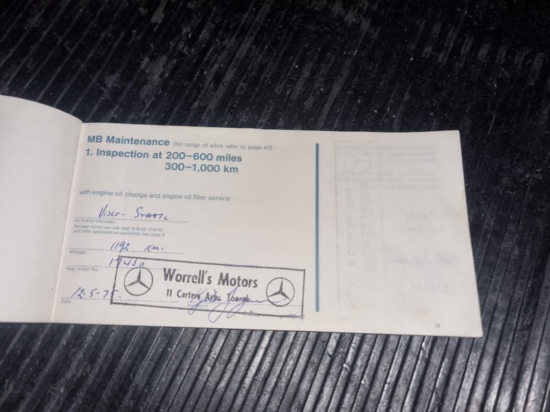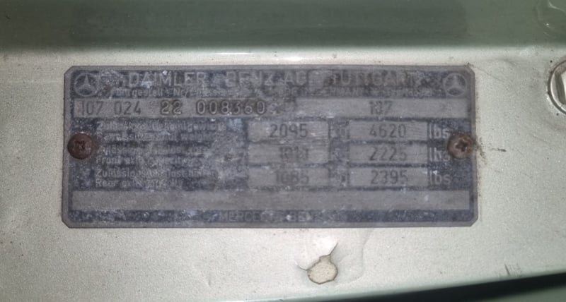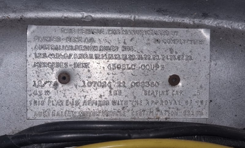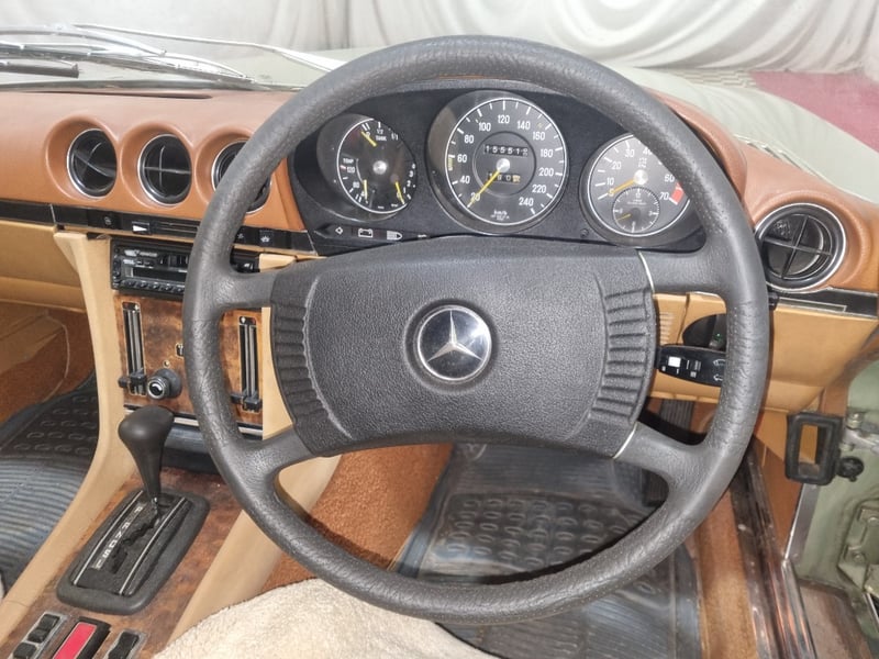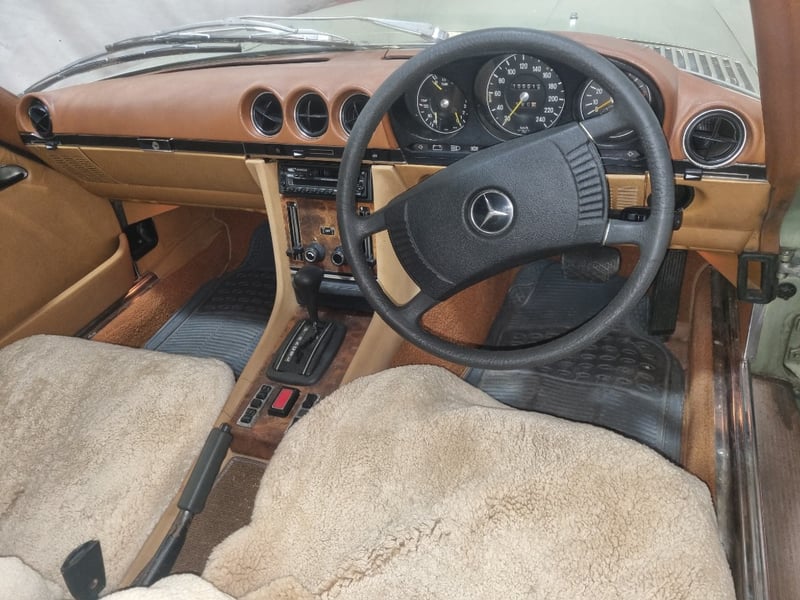 1974 Mercedes-Benz 450 SLC Year: 1974 Make: Mercedes-Benz Model: 450 Series: SLC Body: 4-Door Coupe Drive Type: Rear wheel drive Odometer: Indicating 155,519 Kilometers Engine: 4.5 Petrol Transmission: Automatic Colour: Light Green Seats: 5 Description/extras: Australian delivered car with books Runs rough , Paint peeling Has books - Original Delivery certificate , Full service history is supplied. Price Guide - $10,000 - $12,000 Chassis No: 10702422008360 ENG No: 11798222030527 (Key #50CC Marple) Lloyds stock #581849+1 #CCALL #CCEUR