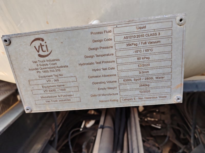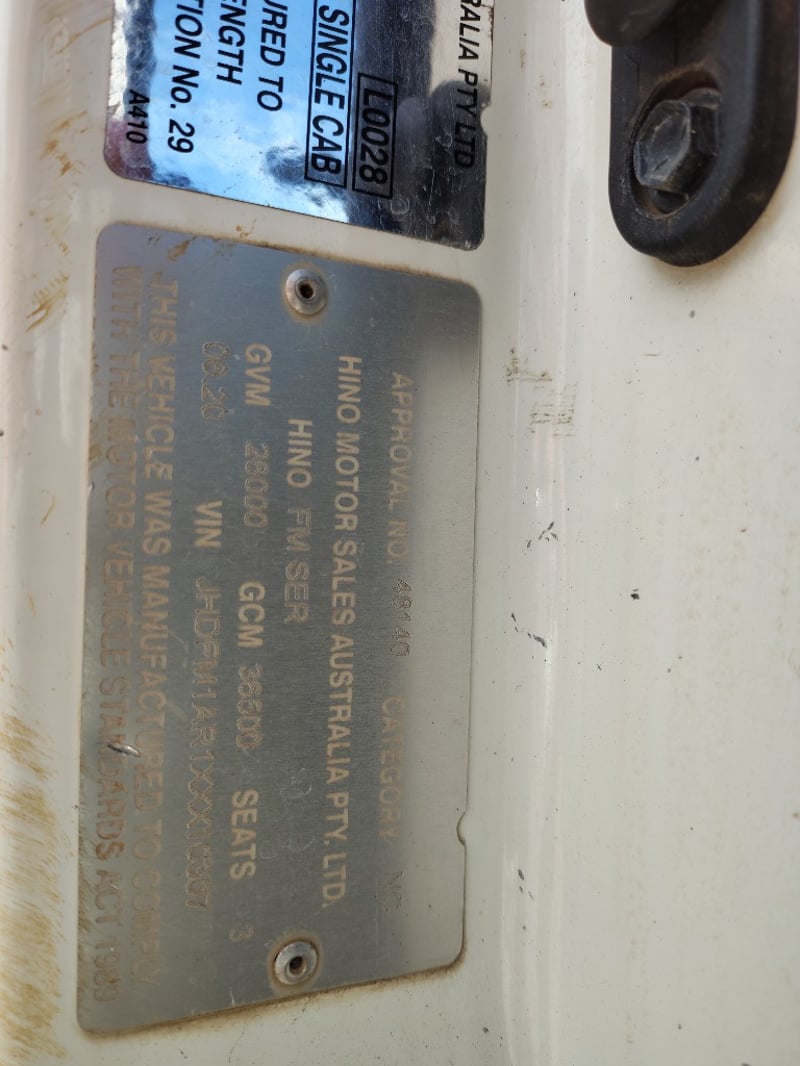 2020 Hino Euro5 500FM2632 8x4 C/Cab VAC Truck Year: 2020 Make: Hino Model: Euro5 500FM2632 8X4 C/CAB Body: VAC truck INDUSTRIES Configuration: 8 x 4 Odometer Indicated: 163,600 kms Engine: Diesel Transmission: Automatic VIN: JHDFM1AR1XXX10307 Engine Number: A09CUS20561 (As Per PPSR) Colour: White Seats: 3 Description/Extras: isolator, reverse parking camera, spare wheels, emergency stop button, walkie-talkie, Bluetooth, manuals and books 2020 VAC truck industries VTI060-1500 VAC system Year: 2020 Make: VAC Model: VTI060-1500 Capacity: 6300 Litres Location: Mornington, VIC Contact: Gage Mackay - 0458 732 549 or [email protected] Inspections: Monday the 27th of October 9am - 3pm Address: 14 Carbine Way, Mornington