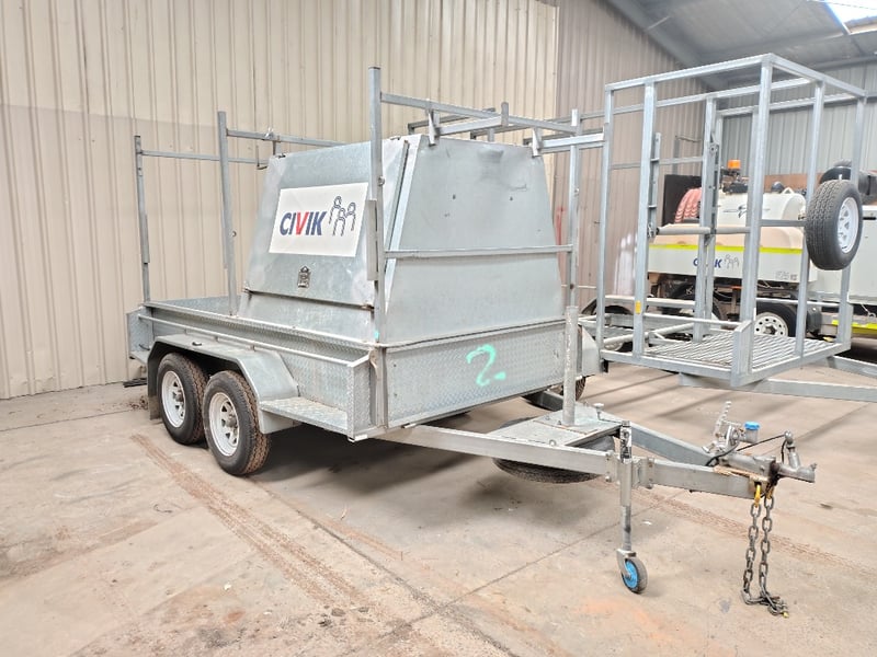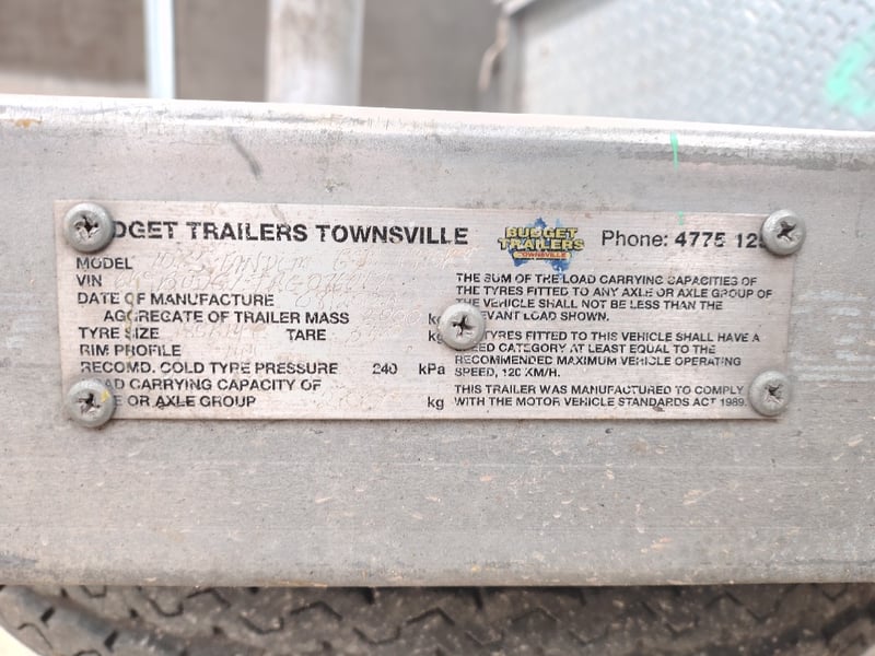 2024 10x5 Enclosed Dual Axle Tool Trailer Year: 2024 Model: 1057MSNP Manufacturer: Budget Trailers Townsville Trailer Type: Dual axle, enclosed tool trailer Axles: Tandem axle with leaf spring suspension Dimensions: 10x5 VIN. 6K9BUDGETRG076017 Aggregate Trailer Mass (ATM): 2000 kg Tare Weight: 580 kg Notes/Extras: Enclosed central tool pod with lockable side compartments Location: Mornington, VIC Contact: Gage Mackay - 0458 732 549 or [email protected] Inspections: Monday the 27th of October 9am - 3pm Address: 14 Carbine Way, Mornington