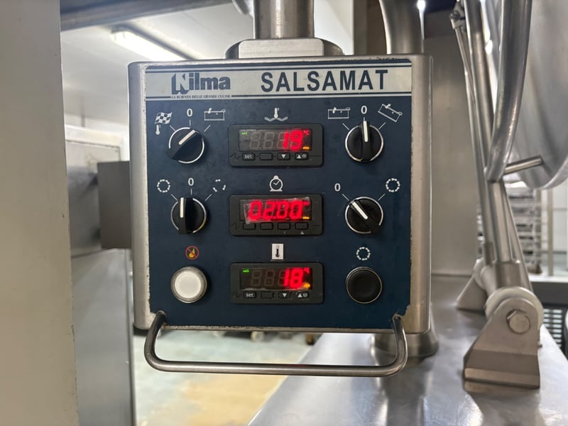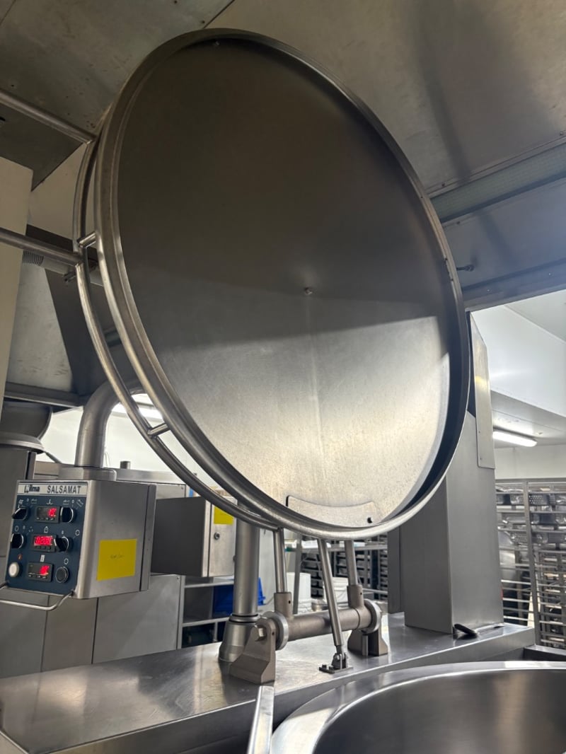 The Salsamat 300GM combines gas-fired heating with automatic tilting, ensuring fast, uniform cooking and easy discharge.