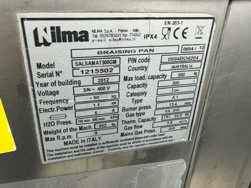 Braising Pan – 2012 Nilma Salsamat 300GM Automatic Tilting Braising Pan