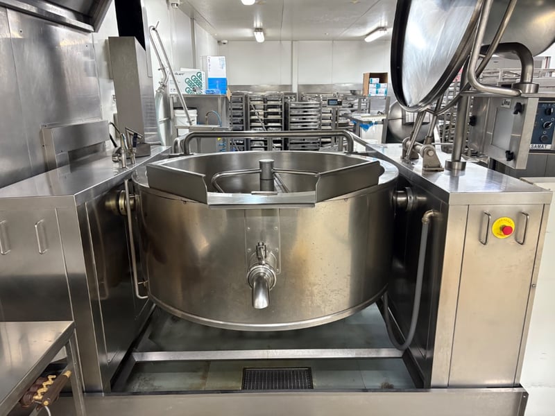 The Salsamat 300GM combines gas-fired heating with automatic tilting, ensuring fast, uniform cooking and easy discharge.