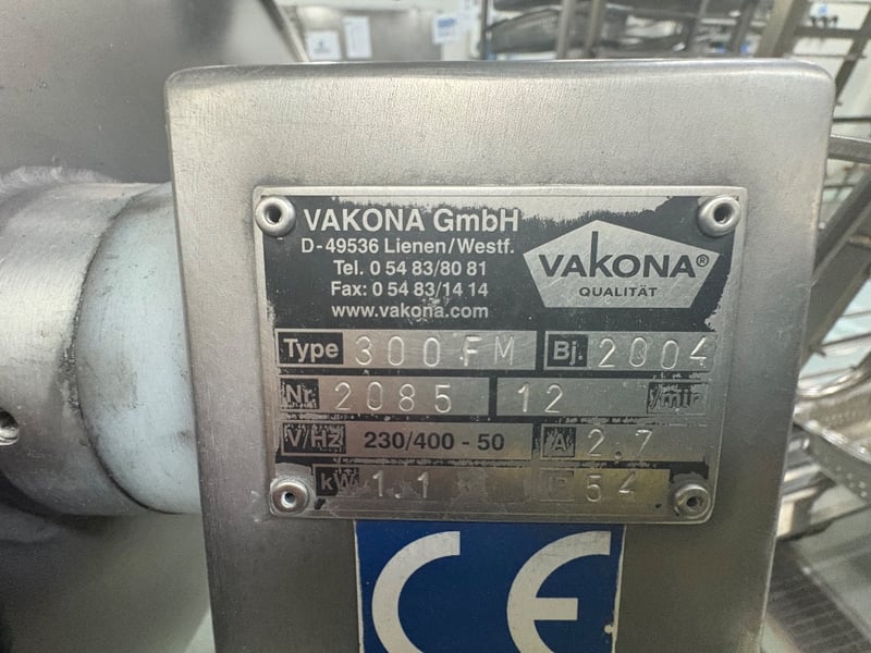 Vakona Qualität 300FM Fine Foods Mixer (on wheels) — SN: 208512 Make/Model: VAKONA FM 300 (Fine Foods Mixing Machine) Serial No.: 208512 Configuration: Mobile (on wheels) Capacity: 300 L nominal bowl volume (FM “300” size) Typical Working Load: ~25 – 210 kg, depending on product/density Application: Designed for deli/fine-food mixing—salads, meats, fish, poultry, sauces, etc. Features • Stainless-steel construction for hygiene and easy cleaning (food-contact compliant). • Twin mixing arms with scraper-style agitation for gentle, uniform mixing (FM series design). • Control options on this series include programmable/PLC touch interfaces (spec varies by unit). • Bowl tilting/unloading and ancillary filling/unloading options available on FM range (check this unit). • Mobile chassis for easy relocation around production areas. Specifications (as per FM-300 family; confirm on the dataplate) • Bowl volume: 300 L. • Working load (typical): ~25–210 kg. • Power & electrics: [Voltage/Phase/Amps — fill from nameplate] • Mixing drive: [Motor kW — fill from nameplate/service docs] • Controls: [Basic / PLC / touchscreen — tick what this unit has] • Dimensions & weight: [N W 160 D 110cm H 180cm Location: Mawson Lakes, South Australia Contact: Gage Mackay - 0458 732 549 or [email protected] Inspection: Wednesday 12th, 9am - 1pm ** Important Notice to Buyers ** Customers MUST sign in on site for inspections and collections Site safety gear is mandatory for all visitors: this includes a high-visibility top, and steel cap boots. The buyer is fully responsible for the dismantling and decommissioning of any electrical, plumbing and gas components. This work must be carried out by a qualified tradesperson. Buyers must provide their own tools, labor, lifting equipment, and transport to ensure the safe removal of the asset. If required, the buyer must organize a crane or Franna at their own expense. All contractors must carry current insurance and comply with Occupational Health and Safety (OHS) regulations. After asset removal, the site must be left clean and tidy. Inspection is highly recommended prior to purchase and removal.