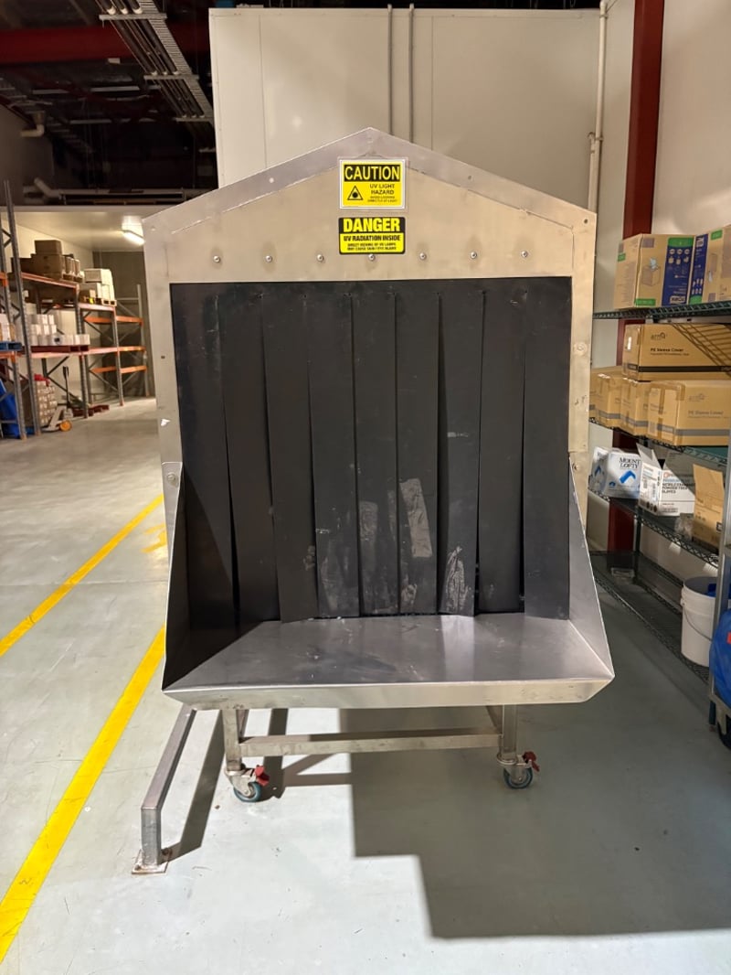 • A UV sanitation / disinfection tunnel designed to treat surfaces of products (or packaging) by exposing them to UV-C light as they pass through on a conveyor belt.