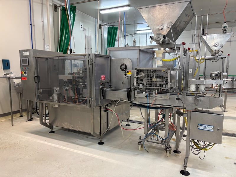 Tray Sealer – Makum Rotary Tray & Bowl Sealer with Top Lidding Film and Volumetric FillerMake / Model: Makum Rotary Tray / Bowl Sealer with Integrated Volumetric Filler