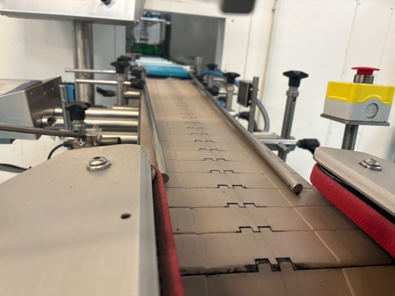 This system includes an integrated VideoJet DataFlex Plus thermal printer for high-quality variable data printing such as batch codes, dates, and barcodes.
