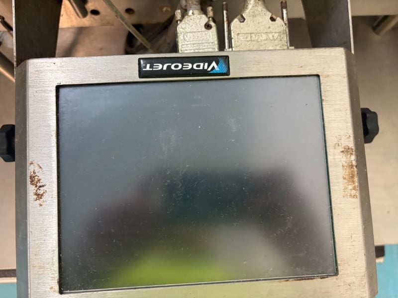 This system includes an integrated VideoJet DataFlex Plus thermal printer for high-quality variable data printing such as batch codes, dates, and barcodes.