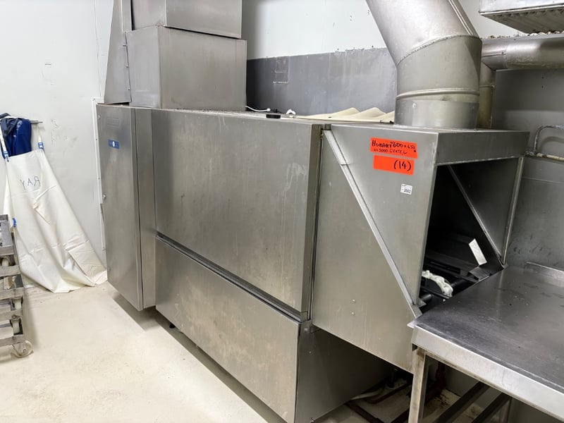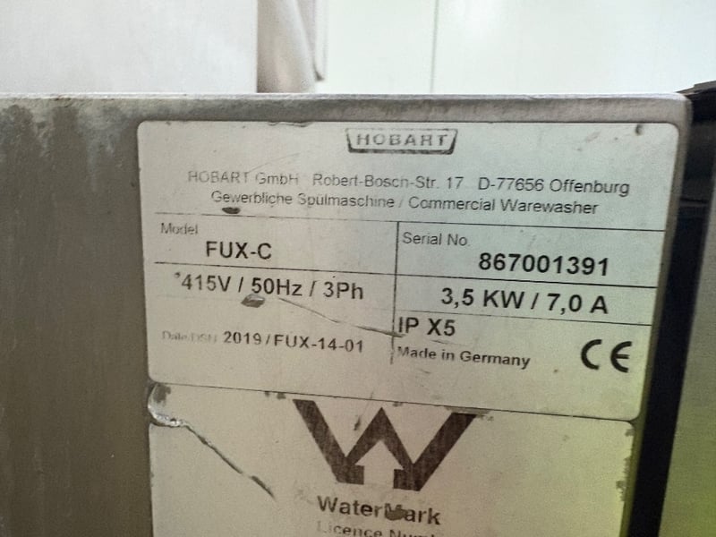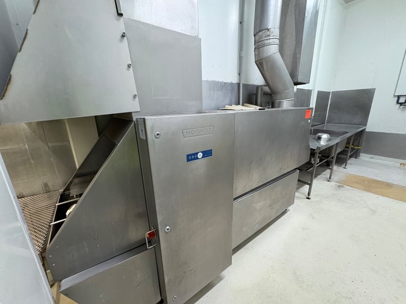 Dishwasher – 2019 Hobart FUX-C Industrial Tunnel Washer with Washdown/Drying Bench Make / Model: Hobart FUX-C Serial Number: 867001391 Year: 2019 Type: Industrial tunnel dishwasher with integrated drying section and stainless-steel bench Power Supply: 415V / 3 Phase / 50 Hz Description High-capacity tunnel-style dishwasher manufactured by Hobart, engineered for industrial food production and cleaning applications. The FUX-C model features a continuous conveyor wash system with automatic wash and rinse zones, followed by an integrated hot-air drying section. Complete with a stainless-steel washdown/drying bench for efficient workflow and hygienic operation in large-scale food facilities. Key Features • Tunnel-style continuous wash and rinse conveyor system. • Integrated drying section for rapid moisture removal. • Stainless-steel construction for full food-industry hygiene compliance. • User-friendly control panel with status indicators and temperature display. • Energy-efficient heating and water recycling system. • Easy-access side panels for servicing and cleaning. • Heavy-duty conveyor belt suitable for trays, utensils, and crates. • Includes stainless-steel drying/work bench for convenience. • Designed for 24/7 industrial operation in washdown environments. Cycle Type: Continuous feed conveyor wash Dishwasher: L 300cm W 90cm, H 200cm, Bench: L 325cm W 90cm H 90cm/ L 190cm W 85 D 90cm Location: Mawson Lakes, South Australia Contact: Gage Mackay - 0458 732 549 or [email protected] ** Important Notice to Buyers ** Customers MUST sign in on site for inspections and collections Site safety gear is mandatory for all visitors: this includes a high-visibility top, and steel cap boots. The buyer is fully responsible for the dismantling and decommissioning of any electrical, plumbing and gas components. This work must be carried out by a qualified tradesperson. Buyers must provide their own tools, labor, lifting equipment, and transport to ensure the safe removal of the asset. If required, the buyer must organize a crane or Franna at their own expense. All contractors must carry current insurance and comply with Occupational Health and Safety (OHS) regulations. After asset removal, the site must be left clean and tidy. Inspection is highly recommended prior to purchase and removal.