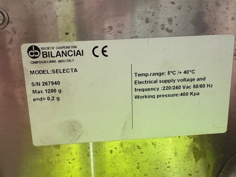 Check Weigher, Bilancial Check Weigher, 240V Model: Selecta, SN: 267941, W 90cm D 70cm H 180cm Location: Mawson Lakes, South Australia Contact: Gage Mackay - 0458 732 549 or [email protected] ** Important Notice to Buyers ** Customers MUST sign in on site for inspections and collections Site safety gear is mandatory for all visitors: this includes a high-visibility top, and steel cap boots. The buyer is fully responsible for the dismantling and decommissioning of any electrical, plumbing and gas components. This work must be carried out by a qualified tradesperson. Buyers must provide their own tools, labor, lifting equipment, and transport to ensure the safe removal of the asset. If required, the buyer must organize a crane or Franna at their own expense. All contractors must carry current insurance and comply with Occupational Health and Safety (OHS) regulations. After asset removal, the site must be left clean and tidy. Inspection is highly recommended prior to purchase and removal.