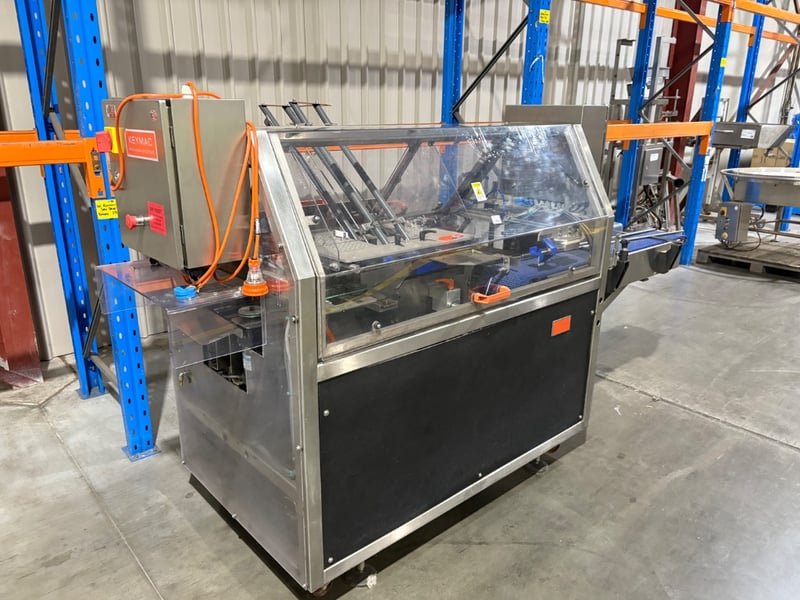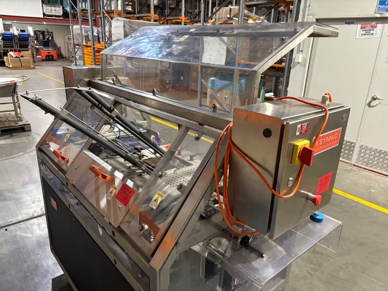 Pre-Glue Sleever – Keymac KCM-1 Single-Lane Automatic Pre-Glue Sleever (240 V) Make / Model: Keymac KCM-1 Serial Number: Not specified Type: Single-lane automatic pre-glued carton sleever Power Supply: 240 V / Single Phase / 50 Hz Description Compact single-lane automatic pre-glue sleever manufactured by Keymac, designed for efficient and precise application of pre-glued carton sleeves to trays and containers. The KCM-1 features servo-controlled carton feeding and tray insertion, ensuring consistent alignment and tight sleeve fit. Built with stainless-steel and aluminium construction, full safety guarding, and a modular infeed conveyor — ideal for food production and ready-meal packaging. Key Features • Single-lane automatic pre-glued carton sleeving system. • Operates on 240 V single-phase power — easy to install and maintain. • Servo-driven sleeve magazine and pusher system for precision control. • Stainless-steel and aluminium construction for hygiene and durability. • Blue modular infeed/discharge conveyor with adjustable guides. • Integrated touchscreen HMI control panel with programmable settings. • Quick-change tooling for different tray and sleeve formats. • Transparent safety guarding with interlocks for operator protection. • Compact footprint for seamless integration into existing packaging lines. • Ideal for paperboard, foil, or plastic food trays D 280 W 90cm H 155cm Location: Mawson Lakes, South Australia Contact: Gage Mackay - 0458 732 549 or [email protected] ** Important Notice to Buyers ** Customers MUST sign in on site for inspections and collections Site safety gear is mandatory for all visitors: this includes a high-visibility top, and steel cap boots. The buyer is fully responsible for the dismantling and decommissioning of any electrical, plumbing and gas components. This work must be carried out by a qualified tradesperson. Buyers must provide their own tools, labor, lifting equipment, and transport to ensure the safe removal of the asset. If required, the buyer must organize a crane or Franna at their own expense. All contractors must carry current insurance and comply with Occupational Health and Safety (OHS) regulations. After asset removal, the site must be left clean and tidy. Inspection is highly recommended prior to purchase and removal.