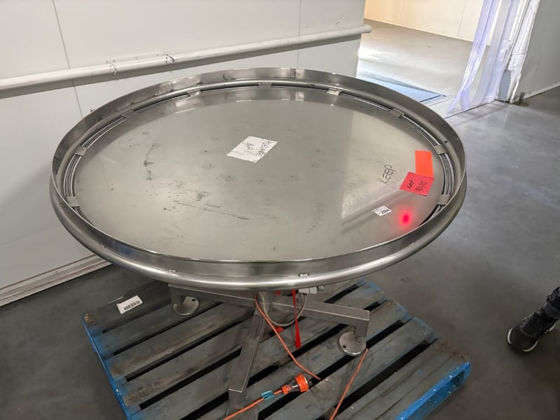 Rotary Accumulation Table, Heat and Control Electric Stainless Steel Lazy Susan, SN:112997, MY: 2004, Model: RT1200, 240V, 1.2 Diameter, W 120cm H 90cm Location: Mawson Lakes, South Australia Contact: Gage Mackay - 0458 732 549 or [email protected] ** Important Notice to Buyers ** Customers MUST sign in on site for inspections and collections Site safety gear is mandatory for all visitors: this includes a high-visibility top, and steel cap boots. The buyer is fully responsible for the dismantling and decommissioning of any electrical, plumbing and gas components. This work must be carried out by a qualified tradesperson. Buyers must provide their own tools, labor, lifting equipment, and transport to ensure the safe removal of the asset. If required, the buyer must organize a crane or Franna at their own expense. All contractors must carry current insurance and comply with Occupational Health and Safety (OHS) regulations. After asset removal, the site must be left clean and tidy. Inspection is highly recommended prior to purchase and removal.