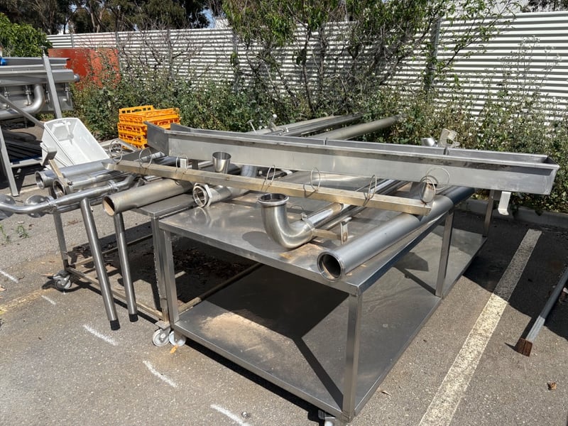 Benches, 2x Stainless Steel Benches on wheels W 230cm D 110cm H 80cm with Assorted sizes of piping. Sold as lot Location: Mawson Lakes, South Australia Contact: Gage Mackay - 0458 732 549 or [email protected] Inspections: Wednesday 29th 10am - 2pm & Inspections Monday the 3rd 8am - 4pm ** Important Notice to Buyers ** Customers MUST sign in on site for inspections and collections Site safety gear is mandatory for all visitors: this includes a high-visibility top, and steel cap boots. The buyer is fully responsible for the dismantling and decommissioning of any electrical, plumbing and gas components. This work must be carried out by a qualified tradesperson. Buyers must provide their own tools, labor, lifting equipment, and transport to ensure the safe removal of the asset. If required, the buyer must organize a crane or Franna at their own expense. All contractors must carry current insurance and comply with Occupational Health and Safety (OHS) regulations. After asset removal, the site must be left clean and tidy. Inspection is highly recommended prior to purchase and removal.
