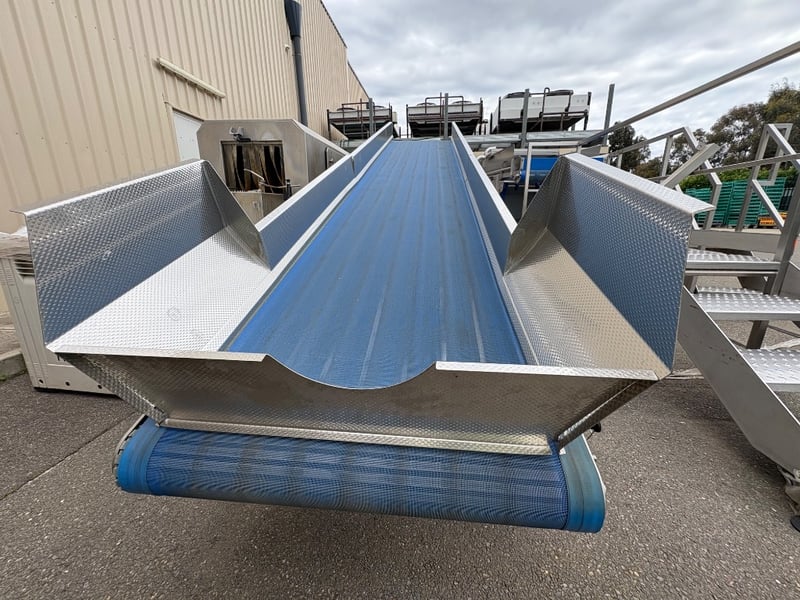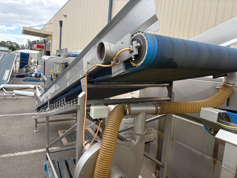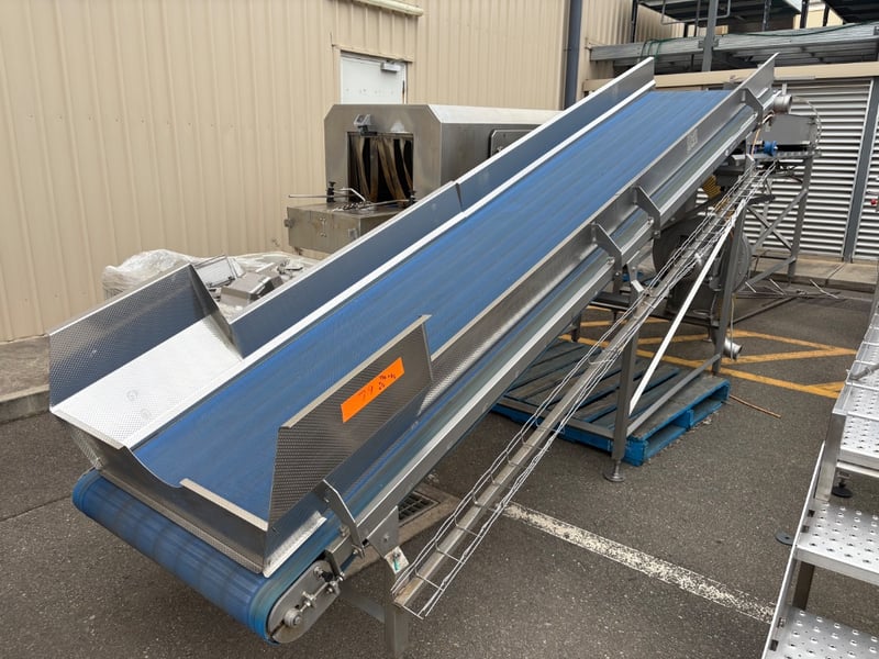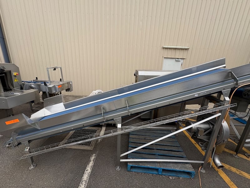 Conveyor, Trommelmotor Stainless Steel Incline Centrifuge Conveyor, SN: 184B1324, L 450cm W 140cm H 210cm