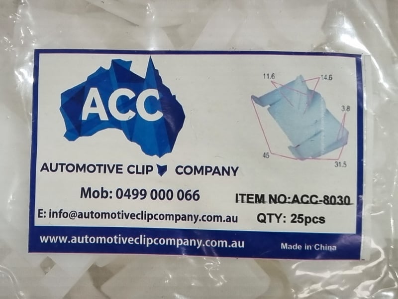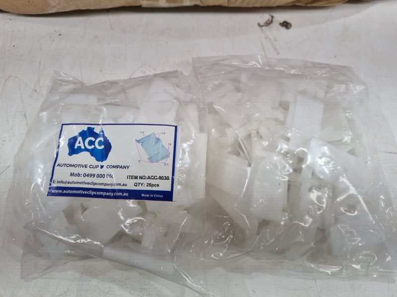 Assorted Automotive Clips, Model: ACC-8099, 25 Pieces Per Pack, ACC-8030 25 Pieces Per Pack, Quantity Per Lot Sold As Lot