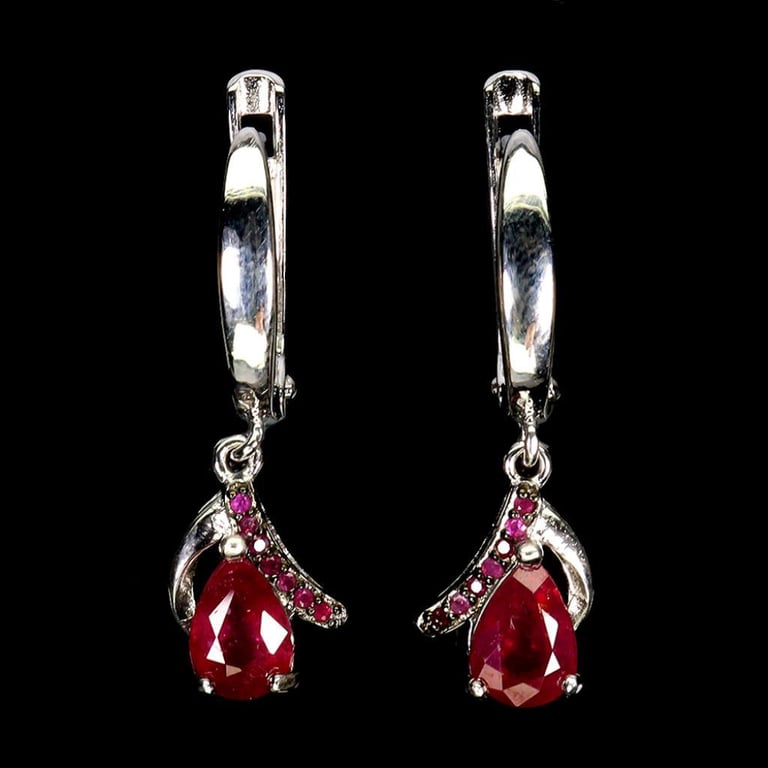 NATURAL MYANMARN RUBY EARRINGS Natural Myanmarn Ruby Earrings. Made In Solid Sterling Silver And Plated In14K White Gold. Features Natural Red Rubies. Earrings Measure 26.0 X 8.0 Mm. Condition: Good - Refer Images 0488279+4