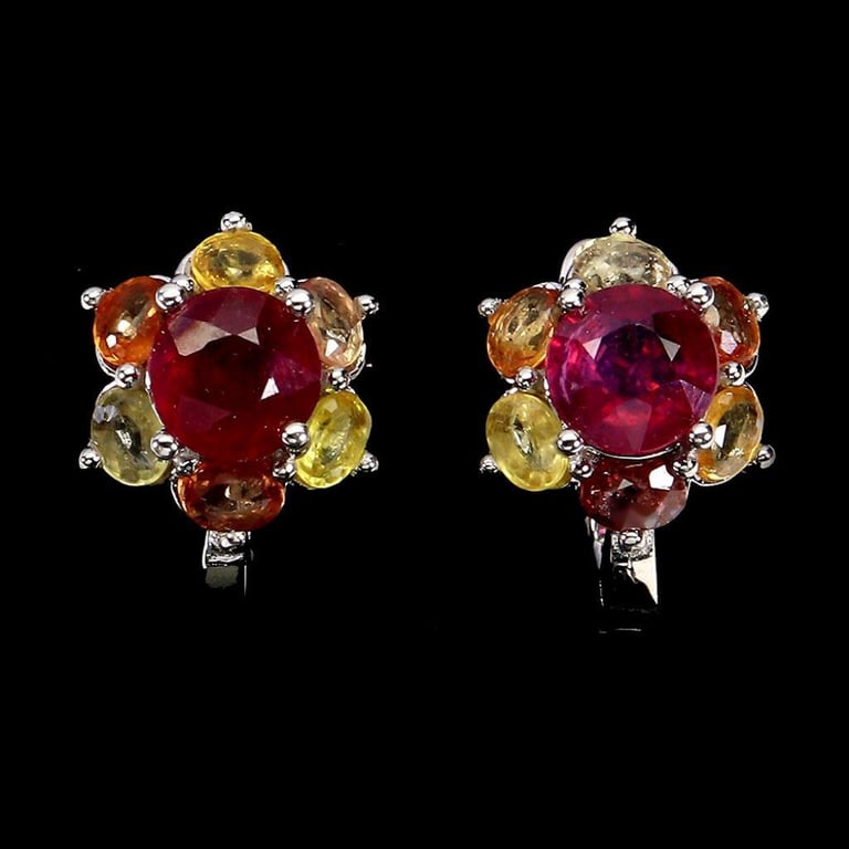 NATURAL RUBY & SAPPHIRE EARRINGS Natural Ruby & Sapphire Earrings. Made In Solid Sterling Silver And Plated In 14K White Gold. Features Natural Red Rubies And Natural Fancy Sapphires. Earrings Emasure 12.0 X 10.0 Mm. Condition: Good - Refer Images 0488279+34