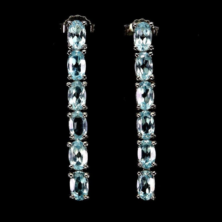 NATURAL SKY BLUE TOPAZ DROP EARRINGS. Natural Sky Blue Topaz Drop Earrings. Made In Solids Terling Silver And Plated In14K White Gold. Features Natural Sky Blue Topaz. Earrings Emasure 31.0 X 4.0 Mm. Condition: Good - Refer Images 0488279+37