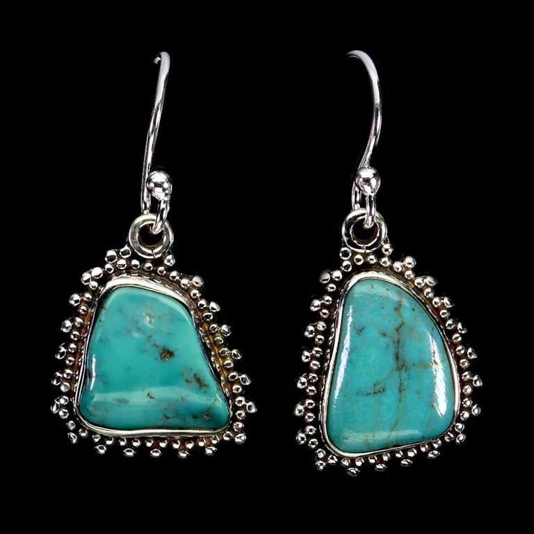 NATURAL HANDMADE TURQUOISE EARRINGS. Natural Handmade Turquoise Earrings. Made In Solid Sterling Silver And Plated In14K White Gold. Features Natural Blue Turquoise. Earrings Measure 32.0 X 14.0 Mm. Condition: Good - Refer Images 0488279+39