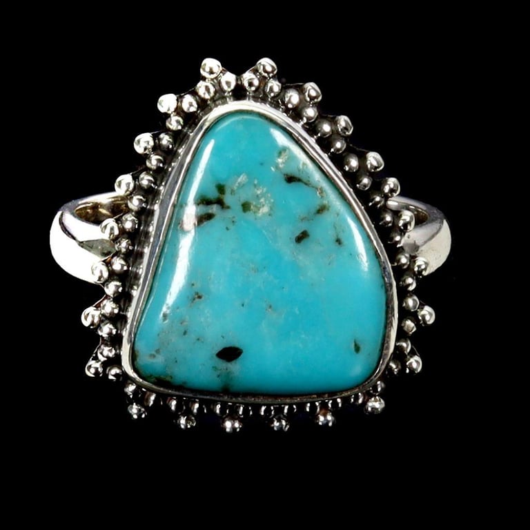 NATURAL HANDMADE TURQUOISE RING. Natural Handmade Turquoise Ring. Made In Solid Sterling Silver And Plated In14K White Gold. Features Natural Blue Turquoise. Ring Size 6.5 Condition: Good - Refer Images 0488279+29