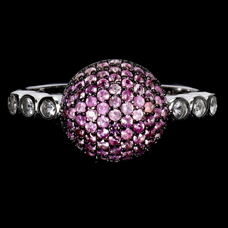 NATURAL DIAMOND CUT PINK SAPPHIRE RING Natural Diamond Cut Pink Sapphire Ring.. Made In Solid Sterling Silver And Plated In14K White Gold. Features Natural Diamlond Cut Oink Sapphires And Sparkling Natural White Topaz. Ring Size 9 Condition: Good - Refer Images 0488279+38