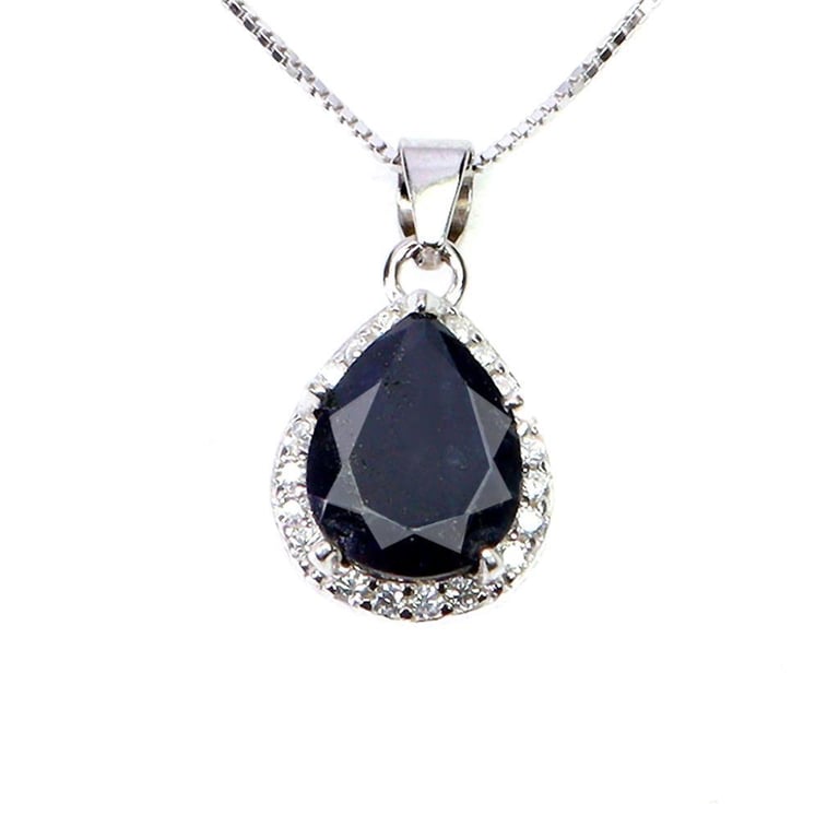 NATURAL MIDNIGHT BLUE SAPPHIRE PENDANT & CHAIN. Natural Midnight Blue Sapphire Pendant & Chain. Made In Solid Sterling Silver And Plated In 14K White Gold. Features Natural Midnight Blue Sapphire And Sparkling Czs. Chain Measures 18 Inches Condition: Good - Refer Images 0488279+17