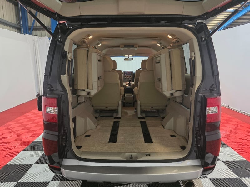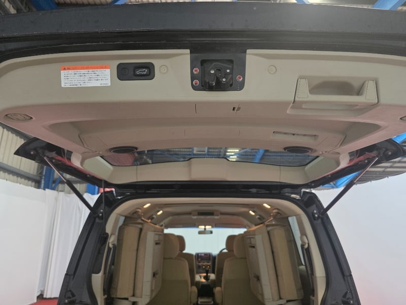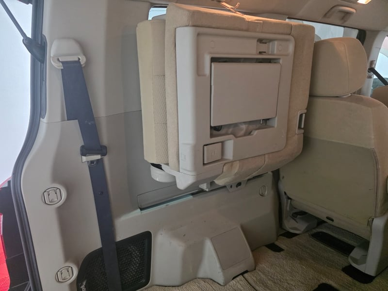 Description/extras: power sliding side doors, power tailgate, Bluetooth media, full Japanese service history, Air Conditioning, Power windows, SRS, Sat Nav, Digital dash, Power seats, Cruise control, Reverse camera, Owner's manual. Stereo / audio system, Paddle shift, multi-function steering wheel, Cupholders, door pockets, glovebox, overhead storage, Floor mats, multi-zone climate control, Drop-down monitor (DVD/video) for rear seats, Foldable / removable/fold-flat rear seats, spare tyre.