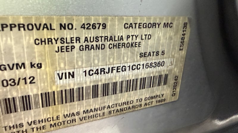 2011 Jeep Grand Cherokee WK Laredo Year: 2011 Make: Jeep Model: Grand Cherokee Series: WK Badge: Laredo Body: 5-Door SUV Drive Type: All wheel drive Odometer: Indicating 144,376 Kilometers Engine: 3.6 V6 Petrol Transmission: Automatic Colour: White Seats: 5 Description/extras: Air Conditioning, Power windows, Digital dash, Cruise control, Leather interior, Climate control, Reverse camera, Central locking. minor imperfections. Price Guide - $5100 - $7850 (Based on Unmodified Vehicle) VIN: 1C4RJFEG1CC168360 ENG No: CC168360 (as per PPSR) Motor Dealer Licence # MD27332 (Key #C3 Carrara x2 keys) Lloyds stock #587534+1 #PCV