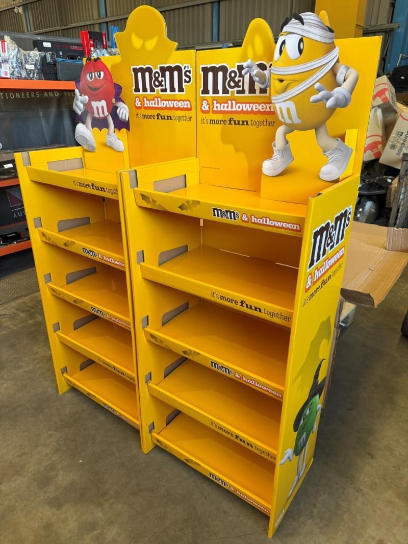 Dual M&M's Halloween Shop Display Stands SOLD AS LOT 160cm H x 60cm W x 40cm L (Per Stand)