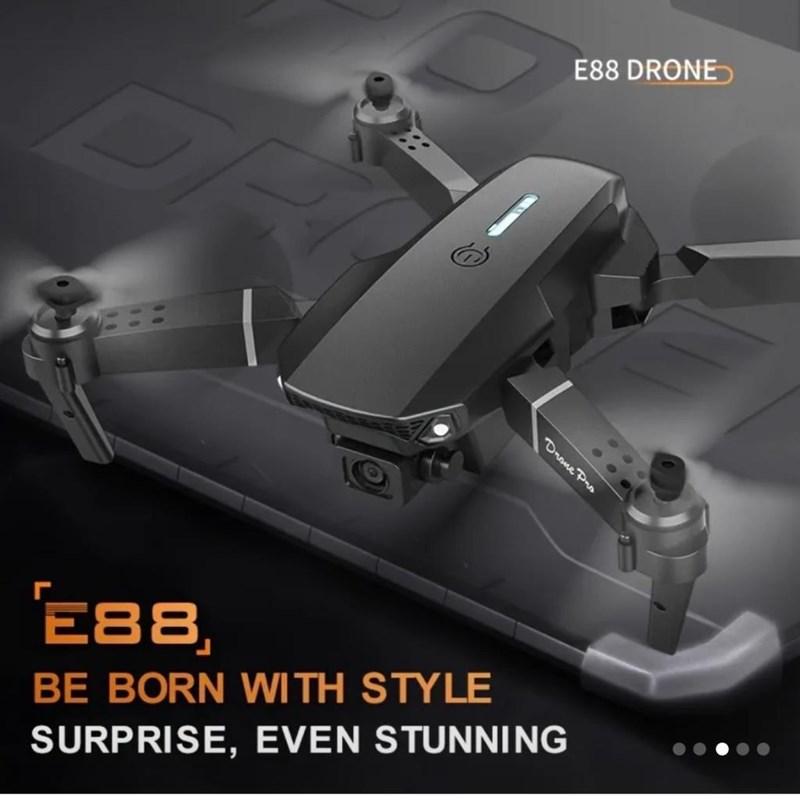 E88 HD Dual Camera Quadcopter Drone with One-Click Return, Wi-Fi Control, USB Charging, 480p Video Capture, Colour Black