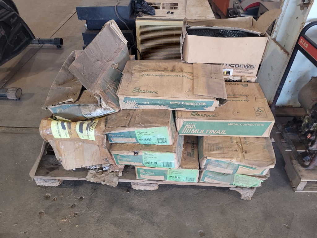 One Pallet holding Various Fasteners and Brackets and More. SOLD AS LOT.