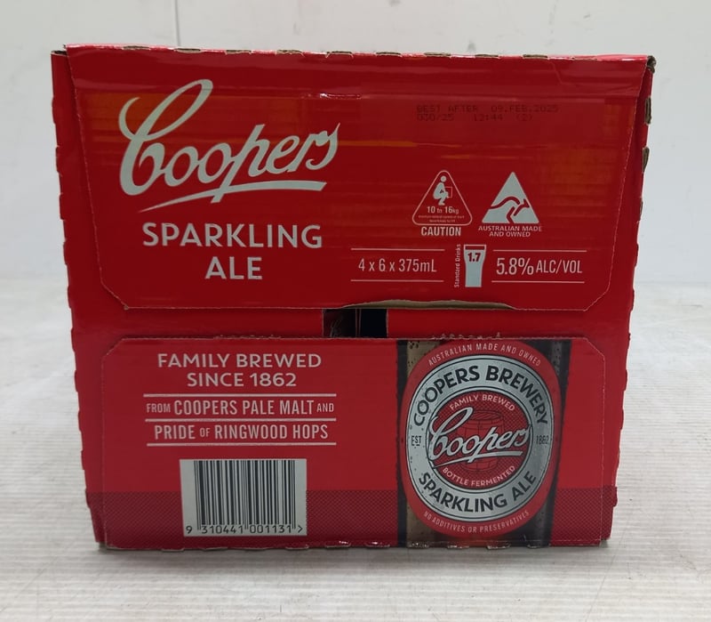 Sparkling Ale, Coopers 24 x 375ml Carton of 24, 375ml bottles of Coopers sparkling Ale