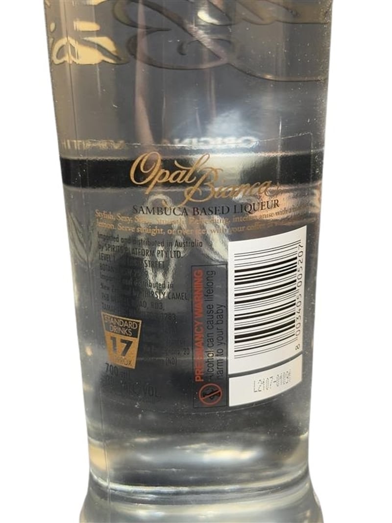 Opal Bianca Sambuca Based Liqueur (700mL Bottle) ABV 30%