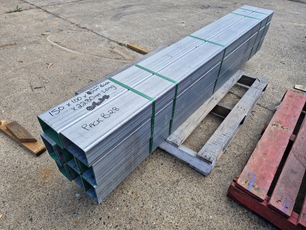 Unused Galvanized RHS Steel Tubes8 x 150mm x 100mm x 4mm x 2280mmSOLD AS LOT