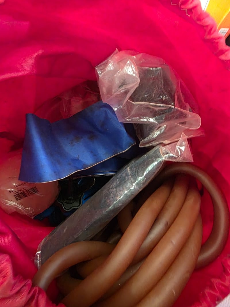 Assorted items, Includes dog house, cabinet, Mirror head and moreSold as lot