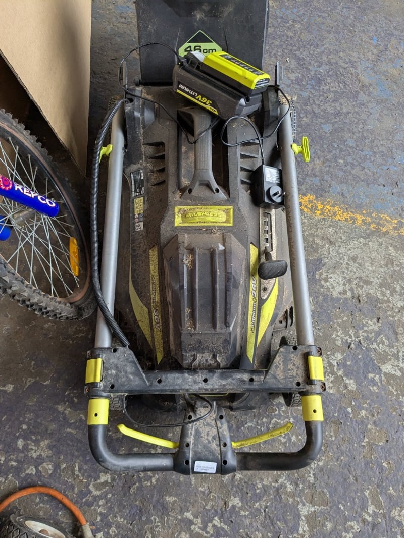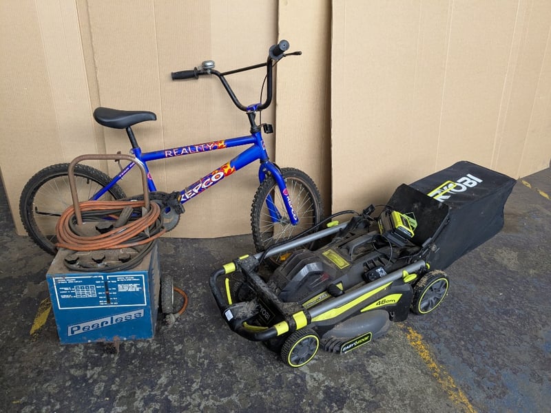 Home & Garden, including Ryobi lawnmower RLM36BL, childrens bike and welding unit